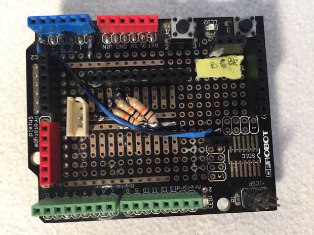 Para cables conectado a Arduino usé un Prototipado Shiel.
