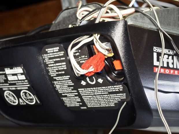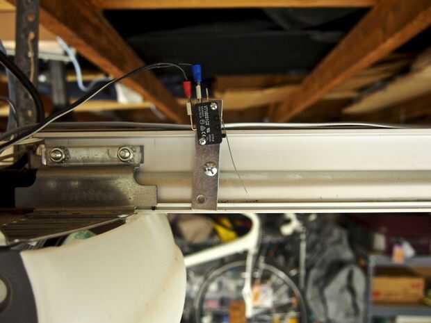 Para abrir y cerrar la puerta del garaje, empalmó entonces un alambre de un relé en el controlador de garaje desde el pulsador en la pared.