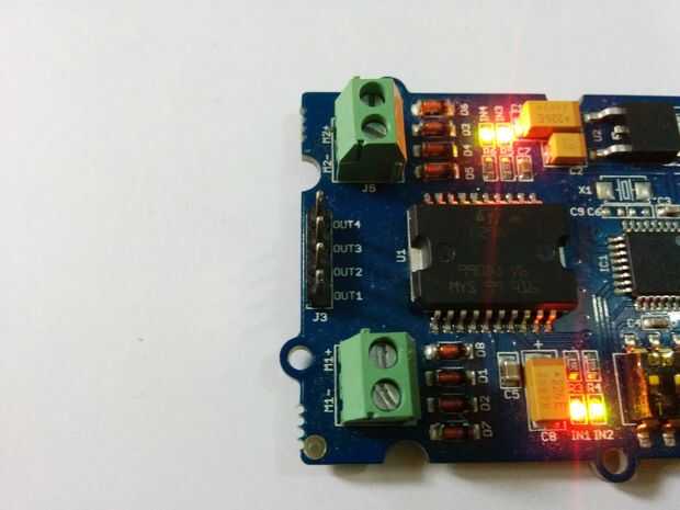 El Motor puede ser conectado en la salida 1 y 2 y si usas 2 motores el otro motor en la salida 3 y 4.