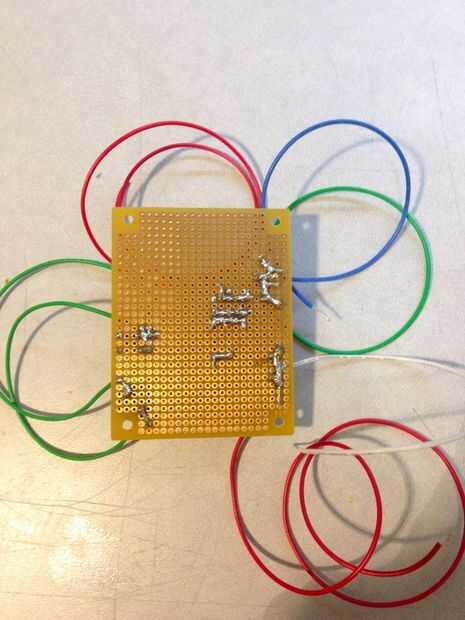 8. después de haber soldado todo en el protoboard, no te olvides de la soldadura de los cables provenientes de la protoboard para el alambre del imán.