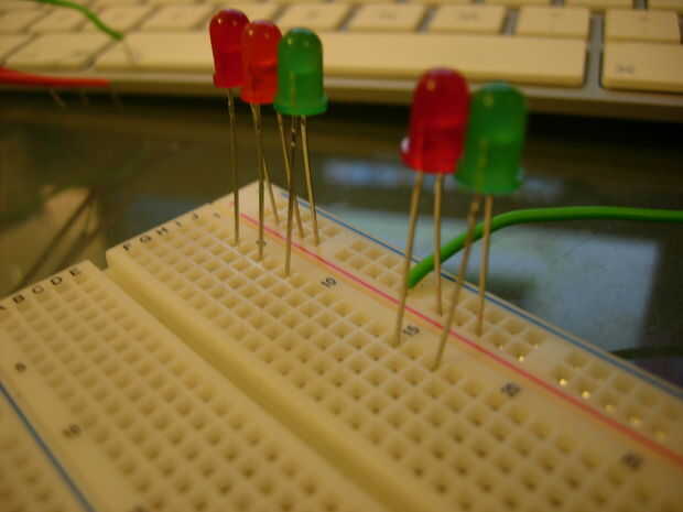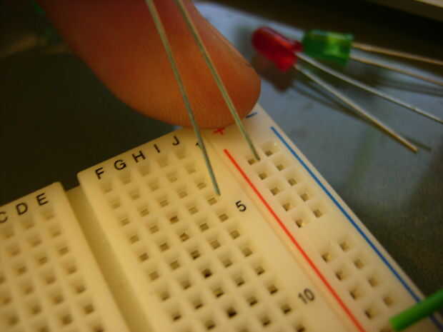 TIP! Asegúrese de que yu tienen los LEDs extendido al otro lado de la 5 columna broca la broca de dos columna o bien no funciona y tienes un corto circuito.