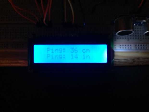 #include <LiquidCrystal.h> //Importing libraries#include <NewPing.h>LiquidCrystal lcd(33,31,22,24,26,28); //Creating object#define ECHO_PIN 7 //Defining pins #define TRIG_PIN 6 #define MAX_DIST 300int contrast = 100; //Defining contrastNewPing sonar(TRIG_PIN, ECHO_PIN, MAX_DIST); //Defining newping object (The HC-SR04)void setup() { //Setup lcd.begin(16,2); //Change this to the size of your LCD, my happens to be 16x2 lcd.clear(); //Clear screen pinMode(2, OUTPUT); //Setting contrast pin 2 to an output analogWrite(2, contrast); //Setting contrast }void loop() { unsigned int uS1 = sonar.ping_in(); //Ping in inches unsigned int uS2 = sonar.ping_cm(); // Ping in cm lcd.clear(); //Clearing screen lcd.setCursor(2,0); //Setting cursor lcd.print("Ping: "); //Printing text lcd.print(uS2); lcd.print(" cm"); lcd.setCursor(2,1); lcd.print("Ping: "); lcd.print(uS1); lcd.print(" in"); lcd.setCursor(1,0); delay(1000); //Change this to the update time you want, I just used 1000 ms }