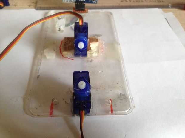 Una vez que tengas todas las patas hechas de conectarlos a los cuernos de servo con algún pegamento y tornillos.