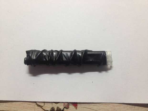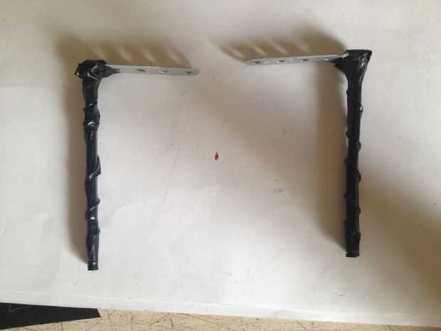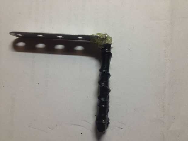 Luego tuerza el alambre hasta el extremo de los tubos y cubre las piernas con cinta adhesiva negra. La cinta negra da las piernas un aspecto de fibra de carbono... tipo bien apagado. Ahora es el momento para conectar la pata a la pieza de mechanno utilizando pegamento caliente. (Las imágenes servirá como una guía mejor: p)