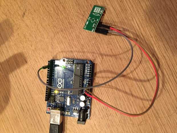 Para capturar la señal, cable del receptor al Arduino como se muestra en la imagen. Esto es: