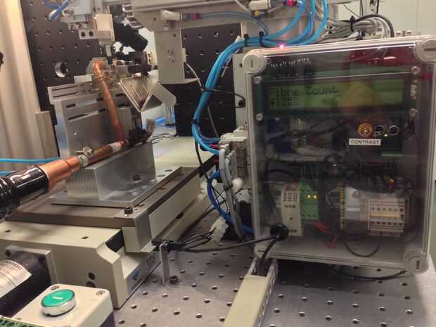 Los regalos de fase lineal de la máquina láser que una fibra procesada, un sensor optoeléctricos detecta cuando la etapa ha llegado a la posición correcta de la fibra para ser recogido. En este punto, la lógica alta del sensor del controlador inicia la sección de código para escoger y contando una fibra. La fibra es seleccionada por pequeñas pinzas y transportada a través de otro opto, éste es sin embargo mucho más sensibles como la fibra de 200 micras de diámetro. La fibra se cuenta sólo si pasa por el opto. Esto es parte de uno de los modos de falla y el control de errores. La fibra intermitentemente no puede procesar correctamente y así no estar donde debe estar. Esto activa otra parte del código si esto sucede, donde la máquina procesará otra fibra, si ese ciclo falla entonces la máquina se detendrá y el alerta de un operador vía control inalámbrico (easyRadio, poco agradable de kit simple). Hay bastante un poco más que esto, así que pregunte si su interesado.