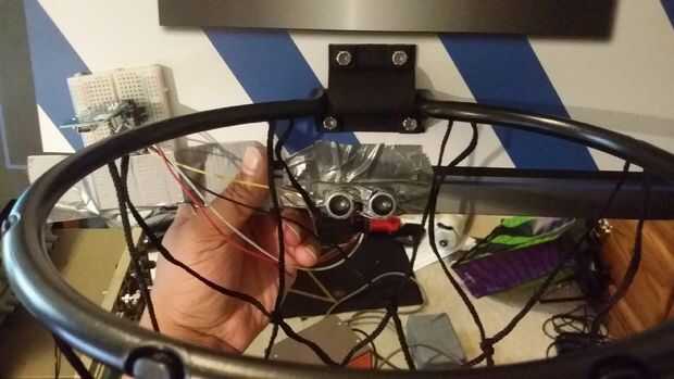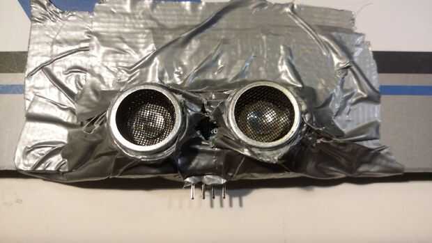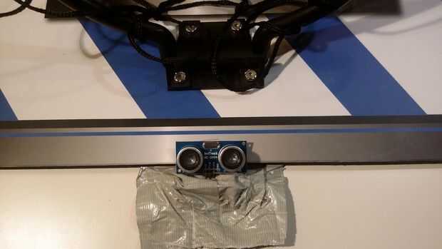 Se coloca el sensor de distancia por debajo del borde. Allí resulta ser uno de esos espacios entre el siguiente para que el sensor no está obstruido.