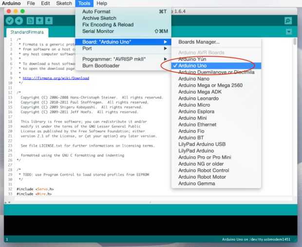 Una vez que tengas tu placa Arduino conectada a su ordenador, necesita decirle a la aplicación de Arduino cómo encontrar el tablero y qué tipo de junta es.