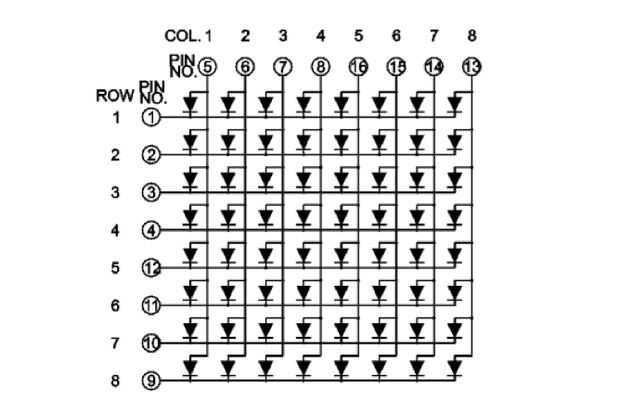 Ahora conectar todos los pines de tierra de la matriz de LED a los pines 6 al 13 de Arduino. Aquí están las conexiones de pin: