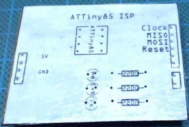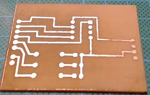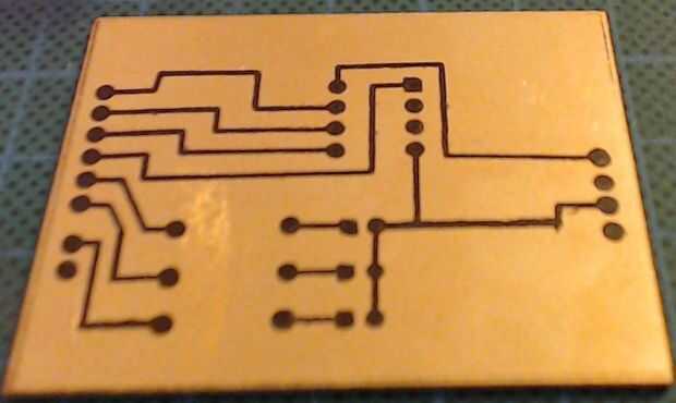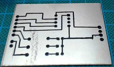 - Lado de cobre después del grabado y con el toner con acetona.