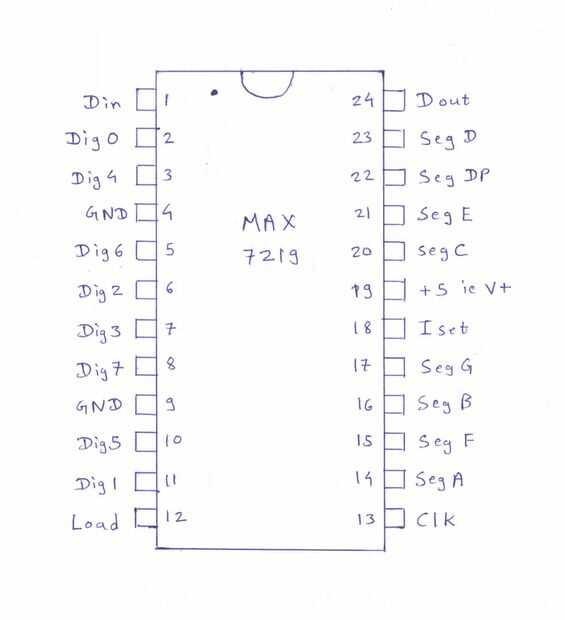 7219 IC es un IC de 24 pines. Funciona con 5V.
