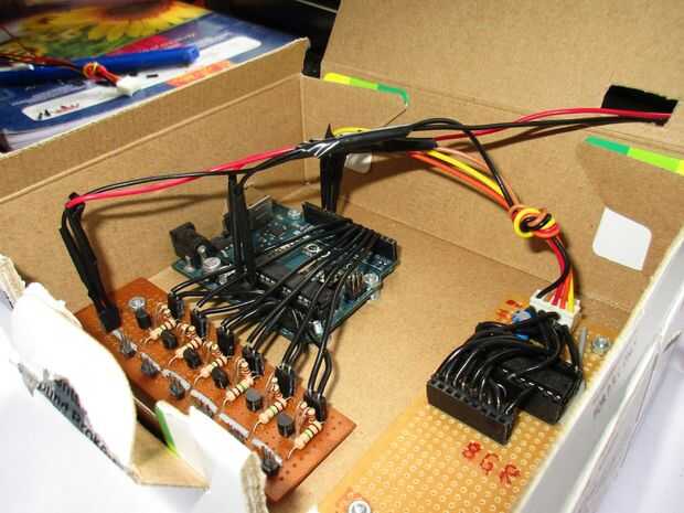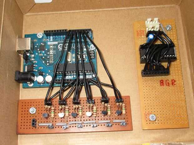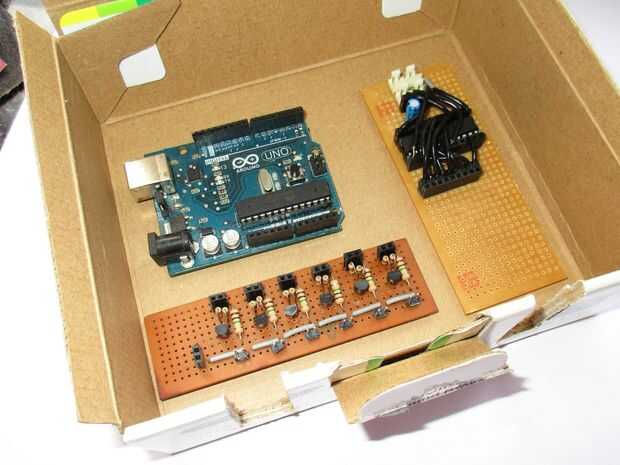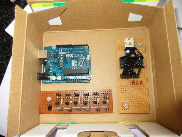 1) tomar cualquier cuadro que puede caber en nuestras tres partes - arduino, el panel de transistor y el regulador del RGB.