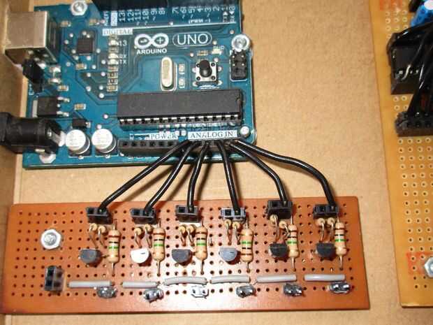 4) conectar arduino de analógico i / p y digital o/p de los pernos al panel de transistor.