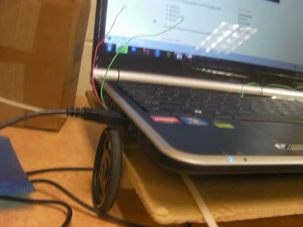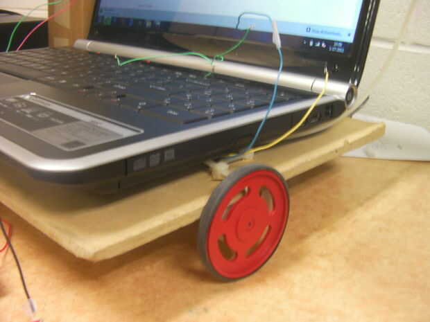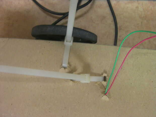 Taladre un orificio separado al lado de cada motor para pasar los cables y en su lugar con cinta adhesiva.