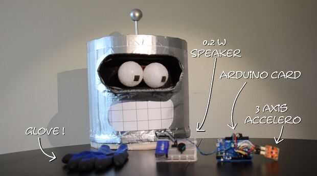 El código es básico: se aplica al ritmo de la canción y antes de cada paso de tiempo, el guante detecta la dirección de la gravedad y elige una de las tres notas de la canción.