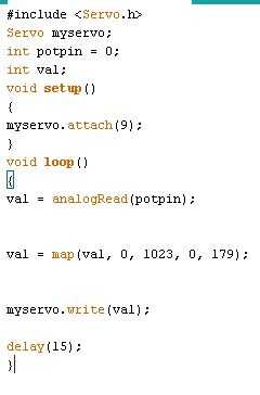 Programa se adjunta a continuación. En programa potenciómetro está conectado al pin analógico 0.