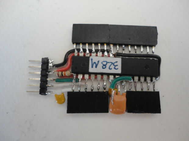 Soldado el receptáculo hembra de 1 x 6 al pin #1, 2, 3, 4, 5 y 6 de ATMega328P.