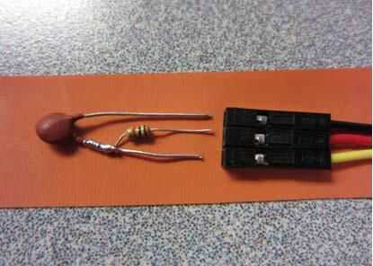el módulo de termistor/resistor no necesita soldar en el clip de 3 pines. Cuando se inserta en el extremo del clip del clip de 3 pines, la