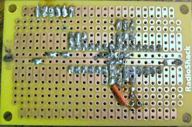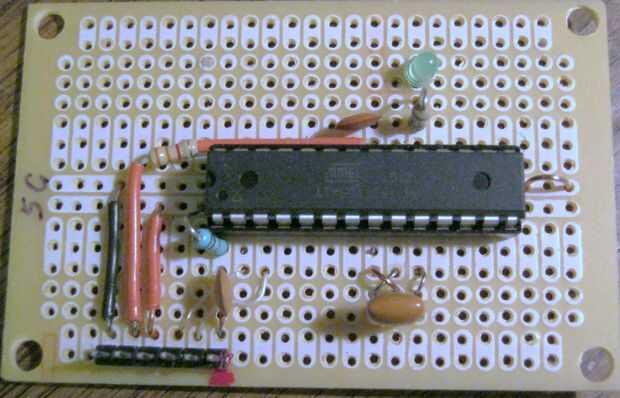 Una de las partes difícil cableado para alimentación (5v) y de la tierra para el IC de AtMega. Ahora a veces si la señal y el pin están el mismo lado, es sólo una cuestión de un pequeño puente a través de soldadura.