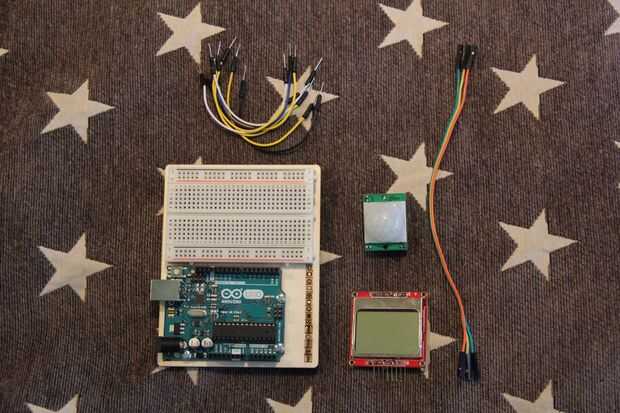 Por supuesto, podría crear este proyecto con cualquier arduino, solo estoy usando la ONU para que sea un poco más fácil de entender como empezar a mayoría de los usuarios de arduino de con esta placa. Como este tutorial se hace sobre todo para mostrar cómo se puede utilizar la pantalla de LCD de Nokia 5110 y cómo funciona el HC-SR501, por supuesto utilizaré, pero puede utilizar cualquier LCD que quieras, pero tendrás que conectar todas las conexiones, editar el código y todo lo que por sí mismo, que puede complicarse al final. También podría hacerlo sin un protoboard, pero por supuesto es muy útil para prototipos. De cualquier manera, aquí son las partes que va a utilizar: