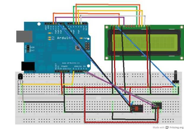 Lo que usted necesita:Placa ArduinoPANTALLA LCD 16 * 2Recortador de 10 kΩPotenciómetro 10 kΩLED 5mm220, 330 resistencias ΩAlgunos puentesProtoboardQué dibujo se hace:En este bosquejo, se imprimirá el valor de potenciómetro analógico en la pantalla lc