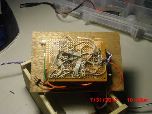 También encaja un atmega8 no un atmega328 porque mi dibujo era solamente 6 bytes de k. El atmega8 sólo posee 8 bytes de k estaba seguro. Más o menos hice un arduino solo en perboard. Usé un divisor del voltaje para el lcd que era resistencia de 1 k y 220 ohmios. 1k va a 5 voltios y el pin 3 en la pantalla LCD, y la resistencia de 220 ohm va a tierra y el pin 3 en la pantalla LCD.