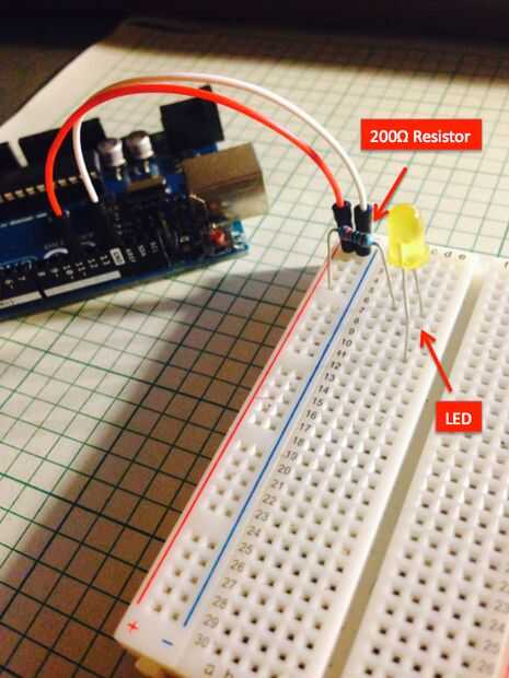 Conecte el cable más largo, positivo de un LED en serie con el resistor insertando en el mismo nodo. Inserte el cable restante en cualquier nodo aislado eléctricamente del resto del circuito.