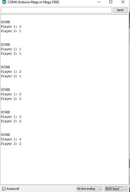 Las puntuaciones se mantendrá conectadas hasta que se restablezca el Arduino.