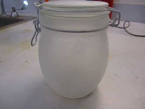 Paso básico justo papel abajo y empezar a rociar. Toma sólo unos minutos que se seque. He añadido 3 capas sólo para que sea más difícil ver en la jarra. Sólo pinté el exterior.