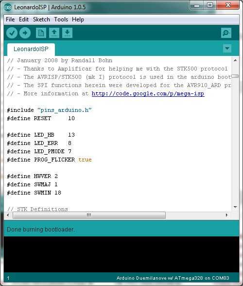 Quema el cargador de arranque (Si compraste el Bareduino o usas un bootloaded Atmega328 saltar este paso)
