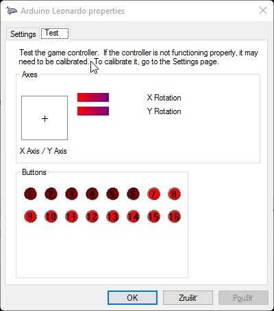 Ir a Panel de Control > dispositivos e impresoras y el dispositivo de búsqueda (para mí es un Arduino Leonardo) > click derecho > configuración de dispositivo de juego > Propiedades > prueba.