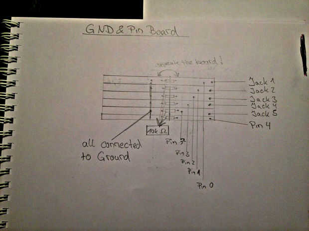 Ahora creamos una tabla que conecta sus pernos a la tierra con la 10k resistencia como en la foto.