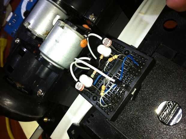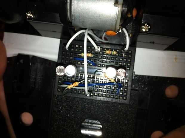 Coloque los fotorresistores y el LED como se ve en las fotos.