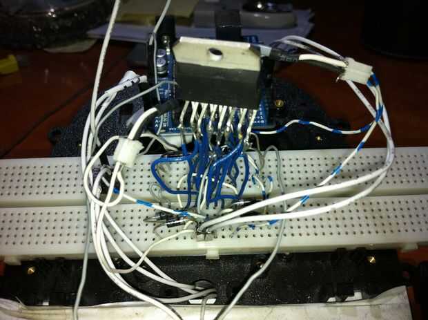 Conectar con algunos diodos los pines de salida de cada puente para motores, si es necesario.