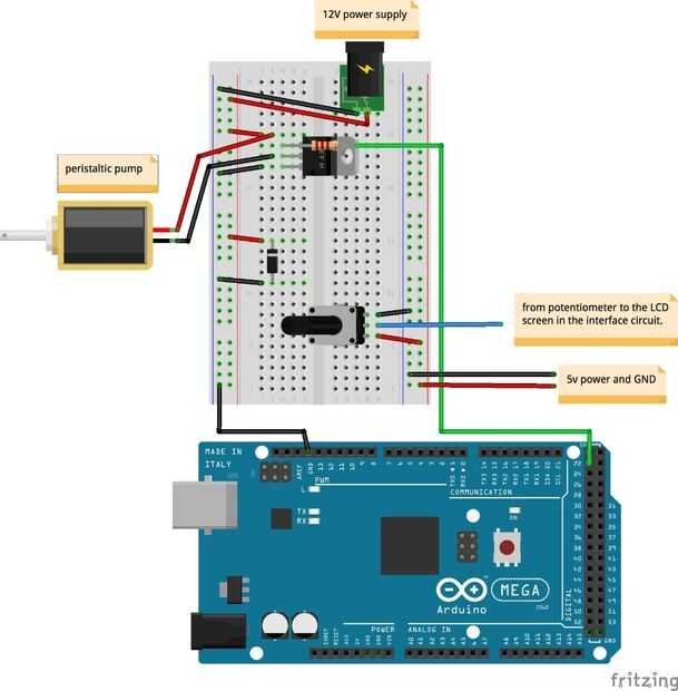 La bomba es reversible, dependiendo de qué manera el voltaje y la tierra se enganchan para arriba. Estos se unen con los cocodrilos, por lo que puede intercambiar alrededor fácilmente si terminas montando al revés o algo. Hay una perilla del potenciómetro, que es necesaria para controlar el contraste de la LCD, pero no es necesario tener en el panel de la interfaz principal. Había espacio en este foro, por lo es donde va. Sienta libre moverlo si usted tiene un diseño estructural diferente; no interferir con cualquiera de los circuitos de la bomba.