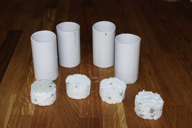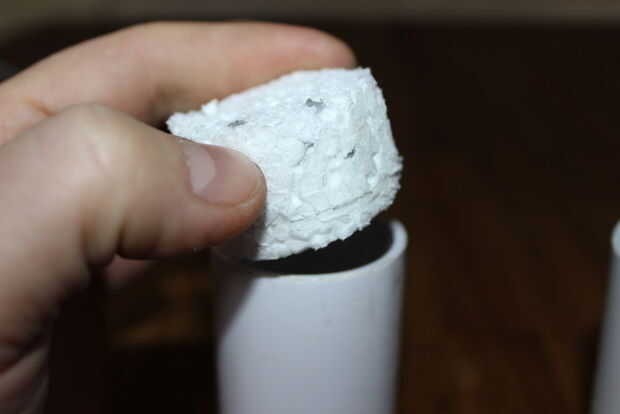Luego se corta el poliestireno para caber dentro de la tubería. Hice esto girando el tubo en el poliestireno