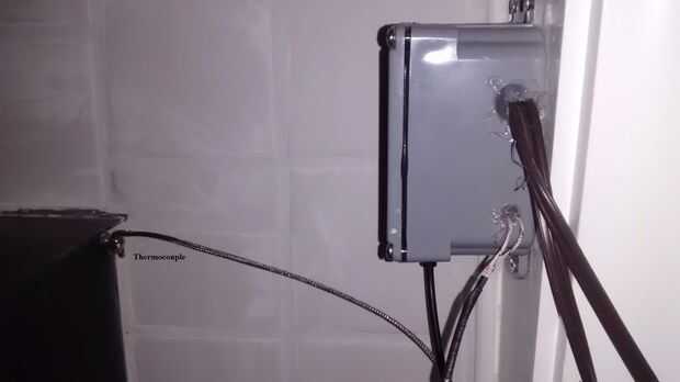 Pienso montar la caja eléctrica cerca de la estufa usando los tornillos cerca de bastantes para el termopar para colocarse en contacto con el prospecto. Usé un imán para fijar el termopar al lado de la estufa semi-forma. En este punto, puede ser enchufado el cable de extensión. Mi setup requiere dos salidas, una para alimentar el ventilador y el otro para alimentar el Arduino. Se utilizó un adaptador de pared USB para alimentar el Arduino.
