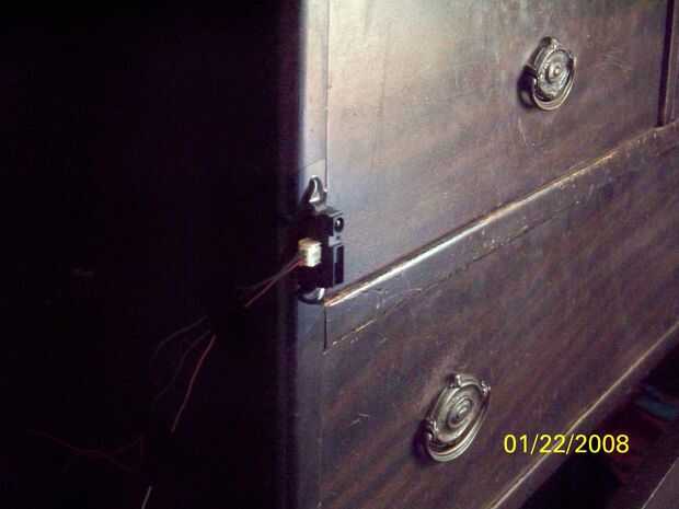 En primer lugar, tomé un sensor infrarrojos sharp GP2Y0A21YK y montado en mi aparador con cinta aislante. detecta cuando pasa gente, ni nada de hecho, cerca de ella. En el Arduino es enganchada a A0.