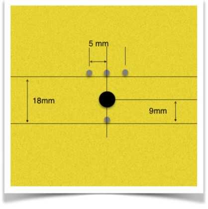 - Dibujar otra línea a través del centro del agujero 5mm perpendicular a las líneas de carril.