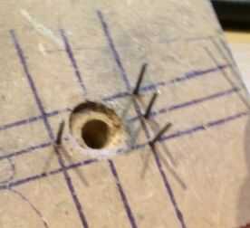 - Deje los taladros en la madera con alrededor de 1-15mm de la caña del taladro que sobresalen de MDF.
