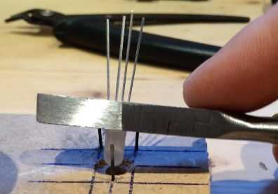 - Utilicé 22swg estañada el alambre de cobre (un rollo de 500g era suficiente) que tiene una anchura de 0,711 mm. Encontré en línea (eBay al rescate otra vez) algunos 0,8 mm Brocas de taladro y utilizado éstos como las cuadernas que doblaría los cables LED alrededor para formar un bucle.