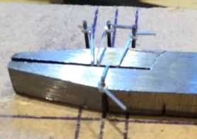 - Tomé uno de los anteriormente utilizados 18x12mm, perforó un agujero de 5mm a través del centro del lado de 18mm y luego establecido este carril en un pequeño panel de MDF (se puede utilizar cualquier pedazo de madera, esto era justo lo que tenia a mano) y el agujero de 5mm en el carril a través del centro del MDF.