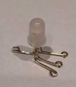 - IMPORTANTE: el orden y la orientación de los conductores es de vital importancia en este paso. El ánodo será el plomo más largo lleva otro en de los cuatro. Asegúrese de que este es el segundo de la derecha. Haz esto mal y tu LED dejará de luz hasta correctamente como prueba en - sé cometí 2 errores de 512.