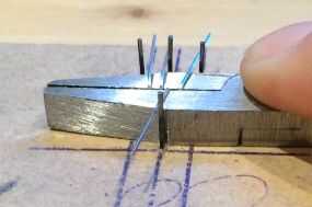 - Tres 0,8 mm Taladro Brocas, medio uno en la línea de centro del agujero 5mm LED, los otros 5mm aparte y lo importante es que justo fuera de la línea de ferrocarril del agujero de LED en el MDF tablero-no en la línea pero con un lado del taladro justo tocando la línea del tren.