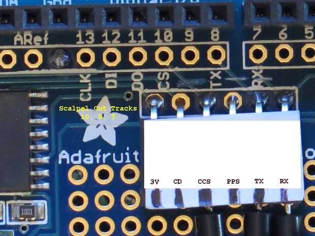Suponiendo que utilizas un Mega, cortar las pistas a los pines 7, 8 y 10 como se muestra en la figura. Utilice un bisturí afilado y con cuidado. Comprueba antes de cortar!