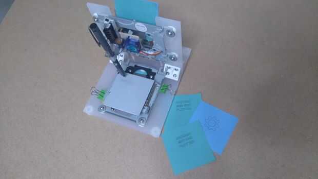Yo estoy ahora explorar la posibilidad de mi cortador de Lazer.A partir de ahora, 100mW lazer puede utilizarse para cortar papel, hojas adhesivas de vinilo...pero encontré que la misma estructura también puede utilizarse como trazador de pluma.Sólo s