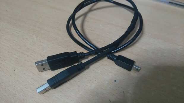 Se necesita más corriente que puede dar a un puerto usb, por lo que debe conectar un cable usb más, ver la 2ª imagen de arriba. Conecte únicamente cables de alimentación (generalmente rojos y negros) con el principal. La tensión es de 5V, pero han duplicado la corriente! (de la wiki: máximo actual del USB 2.0: 0,5 A y del USB 3.0 y 3.1: 0.9).