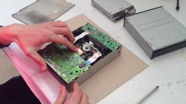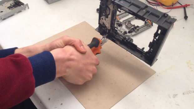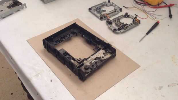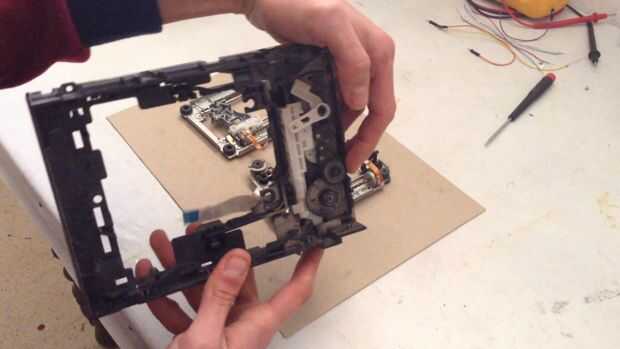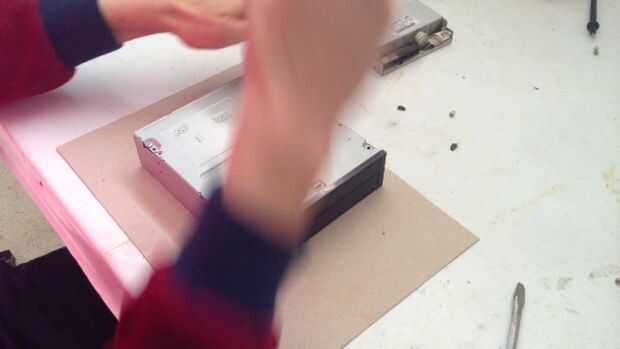 en este paso vamos a comenzar por desmontar las unidades de DVD para obtener los motores paso a paso y los carros del laser que lee el disco es simple un destornillador abre la caja de metal y mantenerlo va a ser el cuerpo principal de nuestro plotter también necesitaremos el mecanismo plástico de la bandeja de DVD para nuestro z se trata de cómo se ve :