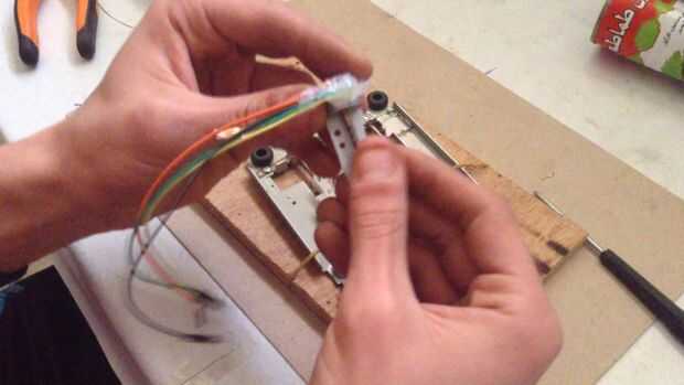 cada paso a paso las necesidades motor 4 hilos corte los cuatro cables a la misma longitud y ponen una punta de soldadura en la parte superior luego soldarlos al motor paso a paso.