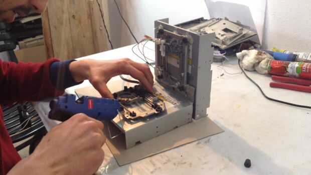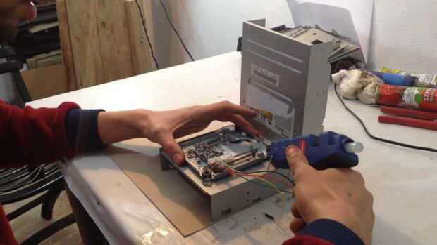 la base de nuestro plotter es la caja de metal sí mismo os adjunto con tornillos y pernos, pero puede utilizar pegamento caliente.